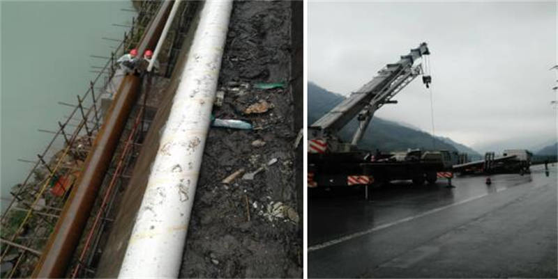 2018年11月13日,我公司接到該應急任務后,立即組織技術人員進行現(xiàn)場考察及施工放樣工作,并于11月18日安排施工人員及機械進場施工。通過科學安排,精心組織,我公司工程人員搶抓工期,克難攻堅,歷時40天,于2018年12月28日下午在雨夾雪中完成了最后一根鋼管的安裝。該工程總共完成波紋管埋置750米,鋼管安設350米。目前,黃泥崗主體工程任務已保質(zhì)保量按期完成。