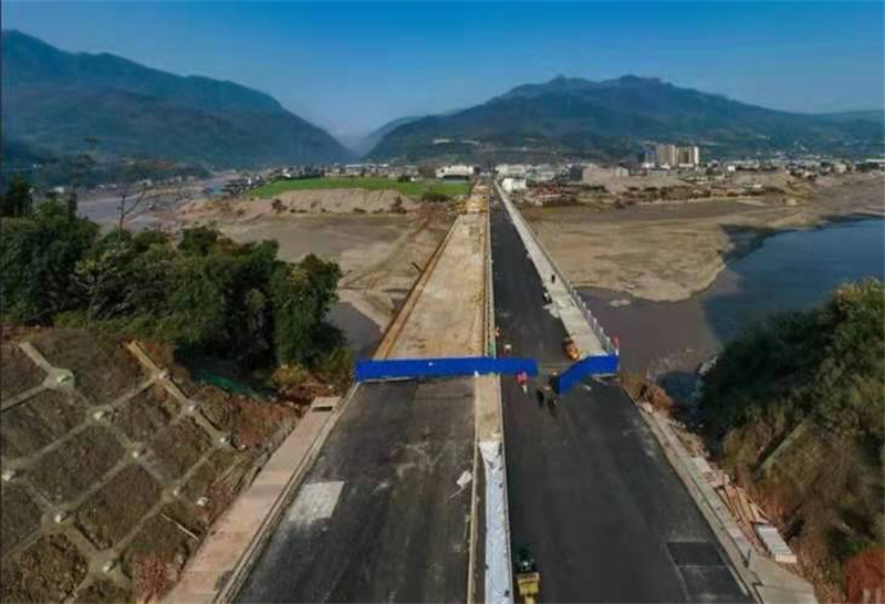 12月24日,雅安多營(yíng)青衣江大橋已貫通的半幅橋面和兩端引道已完成路面鋪設(shè)和護(hù)欄安裝,另半幅橋面完成澆筑,開始橋面鋪設(shè),大橋即將