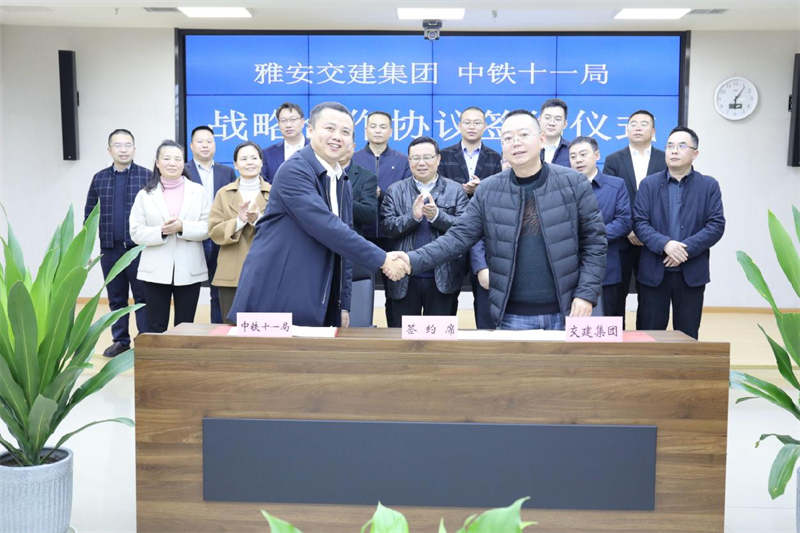 呂涵表示,中鐵十一局在承建川藏鐵路建設項目中,已與雅安交建集團建立了部分合作關系,結下了深厚友誼。希望雙方通過簽訂戰(zhàn)略合作協議,發(fā)揮各自在資源、資金、技術、人才、管理等方面優(yōu)勢,選擇符合國家法律和宏觀調控政策的合作領域,創(chuàng)新合作方式,注重合作效果,實現互利雙贏,建立長久友誼,共同為加快建設“川藏鐵路第一城、綠色發(fā)展示范市”、促進雅安經濟社會發(fā)展貢獻國有企業(yè)的力量。