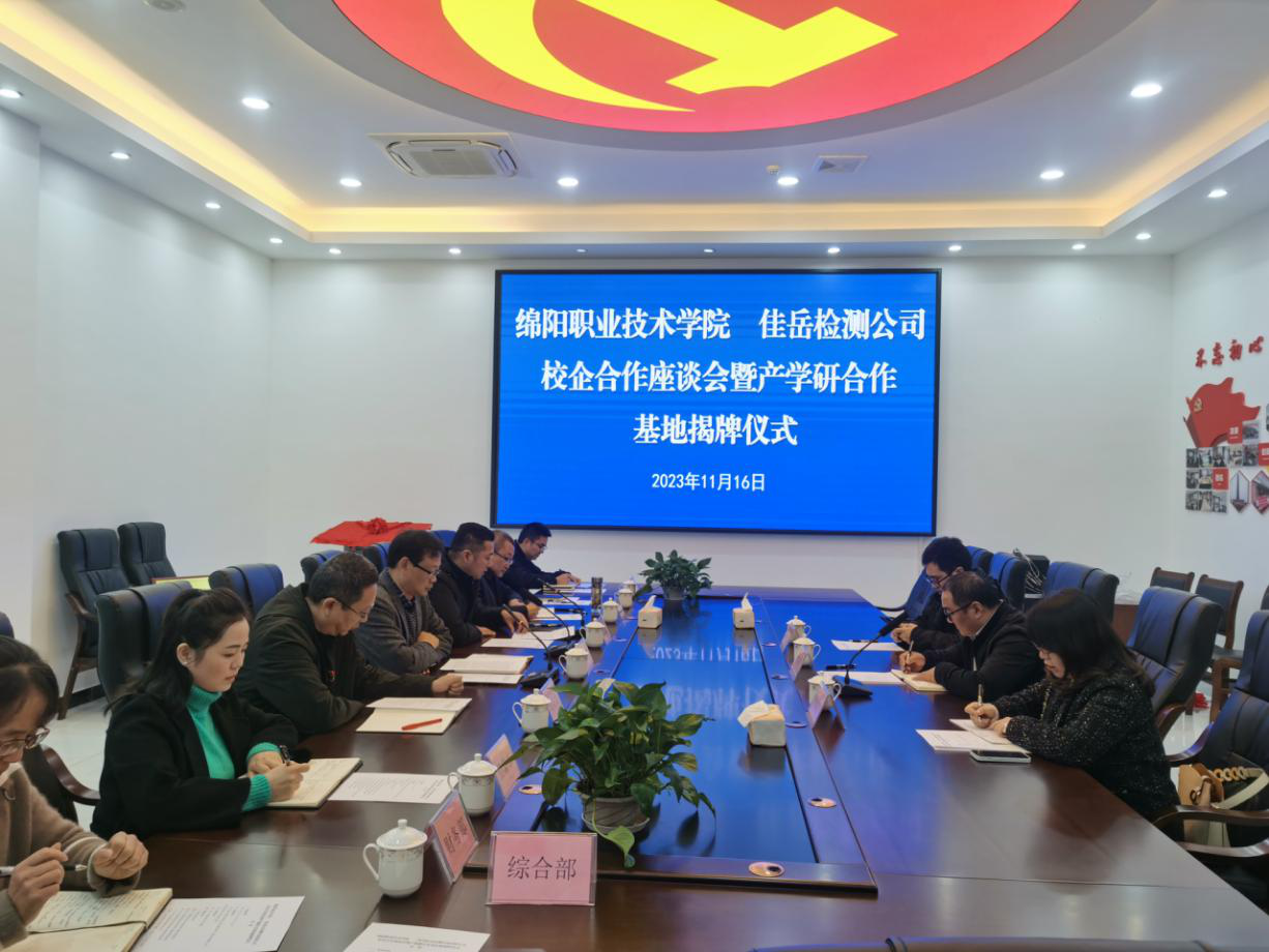 11月16日,雅安交建集團(tuán)所屬四川佳岳檢測(cè)咨詢有限公司與綿陽職業(yè)技術(shù)學(xué)院舉行校企合作座談會(huì)暨產(chǎn)學(xué)研合作基地揭牌儀式,雙方就產(chǎn)學(xué)研實(shí)訓(xùn)基地建設(shè)、人才培養(yǎng)、外加劑研發(fā)生產(chǎn)等進(jìn)行深入交流。綿陽職業(yè)技術(shù)學(xué)院材料與建造學(xué)院院長賈陸軍,四川佳岳佳岳檢測(cè)咨詢有限公司執(zhí)行董事何銘新參加座談。