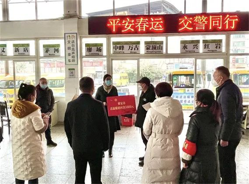 趙雅玲一行深入名山汽車客運站,看望慰問四川蜀通運業(yè)有限責任公司名山分公司春運工作人員,為一線職工送上新春祝福,殷切關(guān)心、仔細詢問企業(yè)生產(chǎn)和職工工作和生活情況。