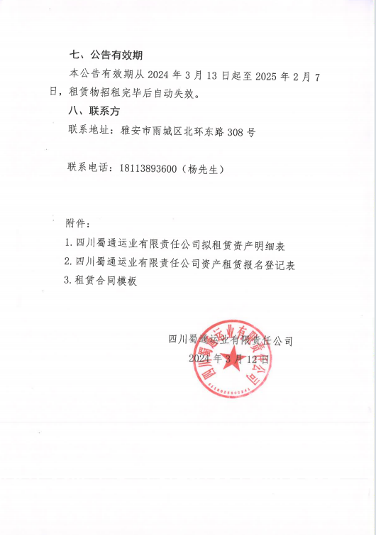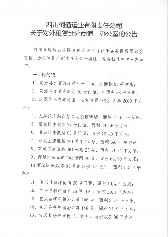 四川蜀通運(yùn)業(yè)有限責(zé)任公司關(guān)于對(duì)外租賃部分門面、辦公室資產(chǎn)的公告附件