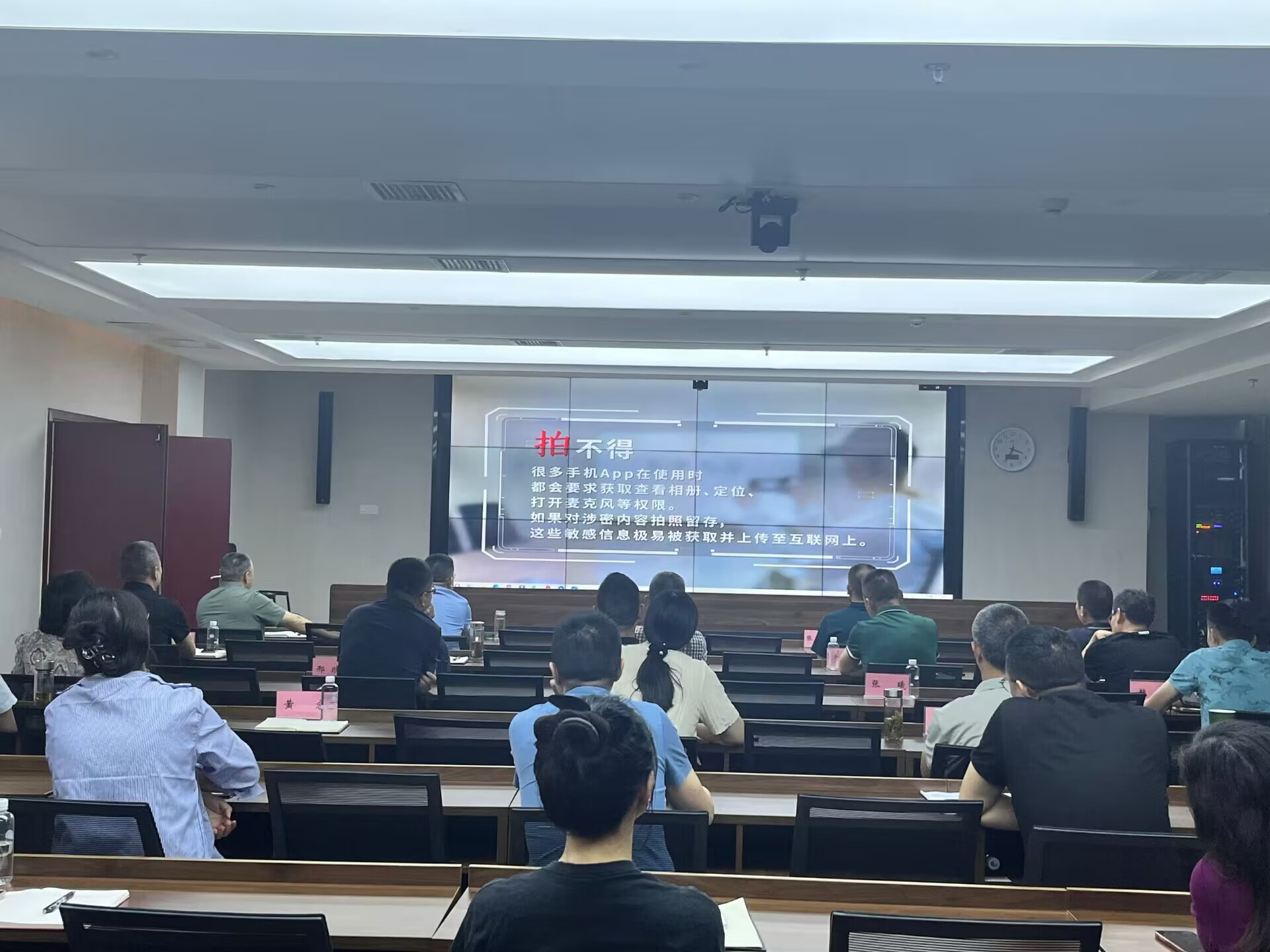 一是普及知識,營造氛圍。全體參與人員對新修訂頒布《中華人民共和國保守國家秘密法》的重要意義、精神實質(zhì)和主要內(nèi)容進行了認真學(xué)習(xí),深刻領(lǐng)會保守國家秘密的現(xiàn)實意義,營造了學(xué)法、守紀(jì)、保密的良好氛圍;二是以案釋法,樹立意識。集中觀看了《把好手機“保密關(guān)”》等保密宣傳教育片,用鮮活的案例,告誡大家要筑牢思想防線,樹立“國家秘密無小事”的保密意識,提高保密工作的責(zé)任感和使命感;三是交流互動,凝聚共識。在交流發(fā)言中大家紛紛表示,在今后的工作中要嚴守保密防線,強化保密意識,及時把學(xué)習(xí)成果轉(zhuǎn)化為抓牢保密工作的能力,嚴格遵守保密條例,堅決與危害國家安全的行為作斗爭,杜絕泄密現(xiàn)象發(fā)生。