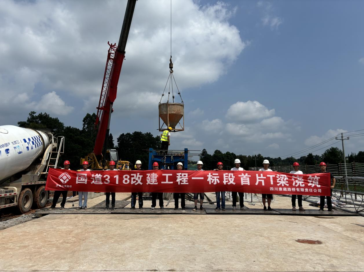 9月7日上午,隨著最后一方混凝土順利入模,首片預制T梁成功澆筑完成,正式拉開全線橋梁上部結(jié)構(gòu)施工的帷幕,雅安交建集團路橋公司國道318改建工程一標段迎來重大節(jié)點。
