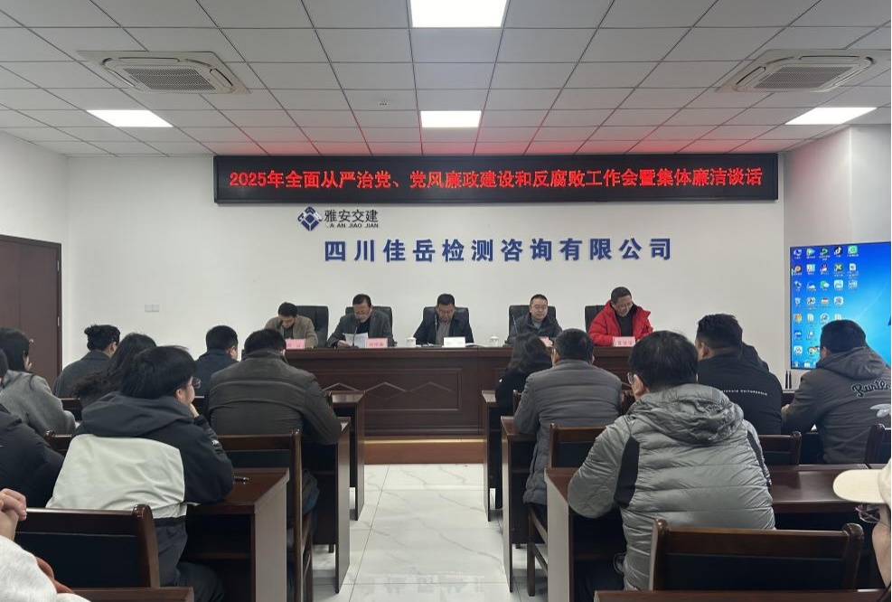 3月20日,四川佳岳檢測(cè)咨詢有限公司召開(kāi)2025年全面從嚴(yán)治黨、黨風(fēng)廉政建設(shè)和反腐敗工作會(huì)暨集體廉潔談話,集團(tuán)黨委專職副書(shū)記張萬(wàn)清、總工程師程學(xué)強(qiáng)參加會(huì)議并提相關(guān)要求。