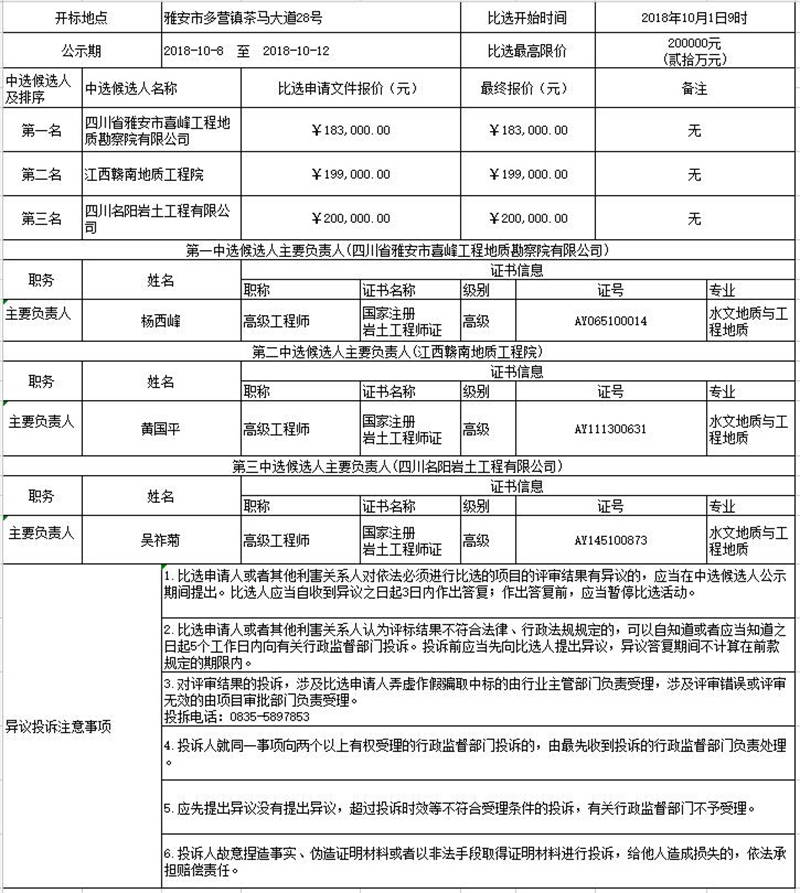 雅安交建集團丹石建材有限公司第二期地質(zhì)勘察服務項目比選公示