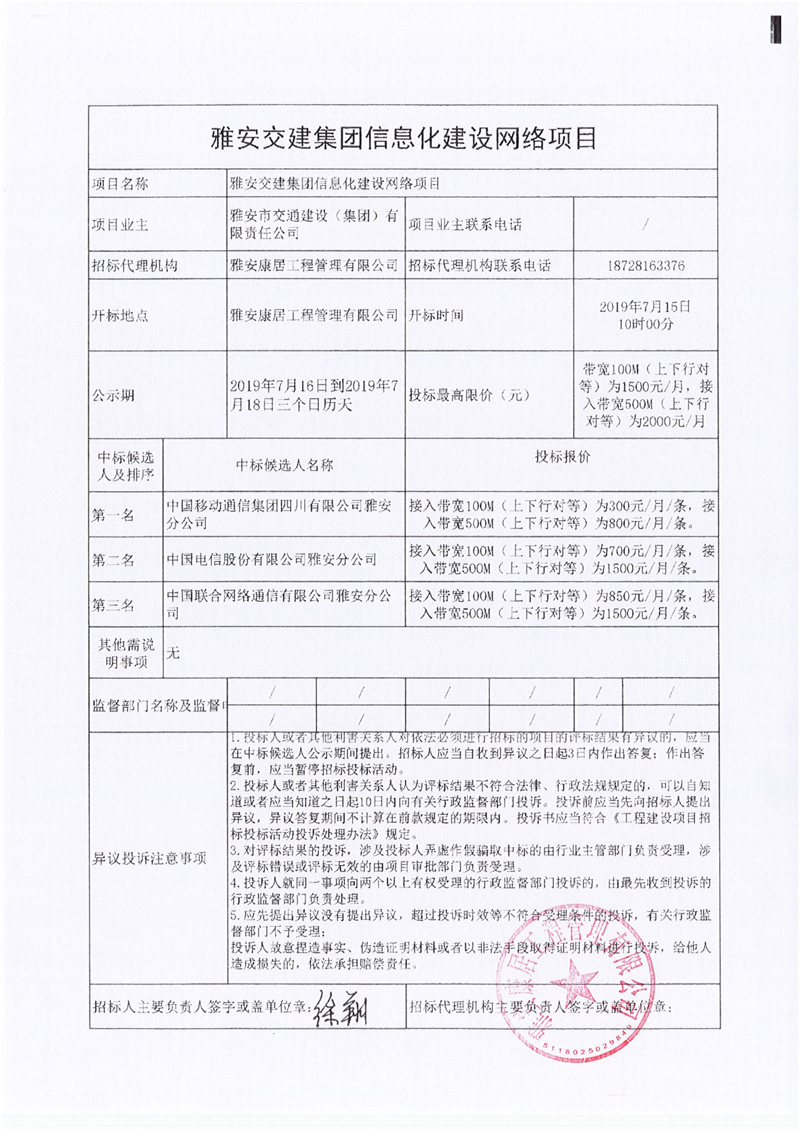 雅安交建集團(tuán)信息化建設(shè)網(wǎng)絡(luò)項(xiàng)目競(jìng)爭(zhēng)性談判結(jié)果公示