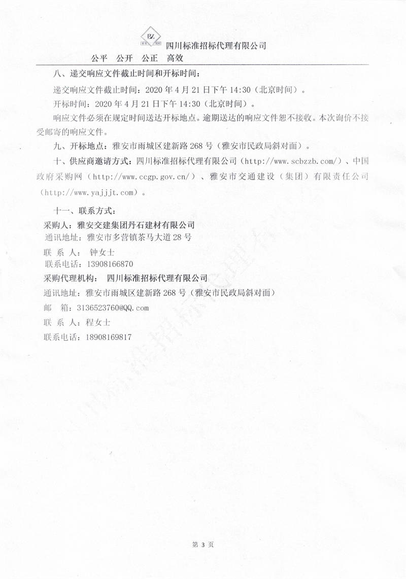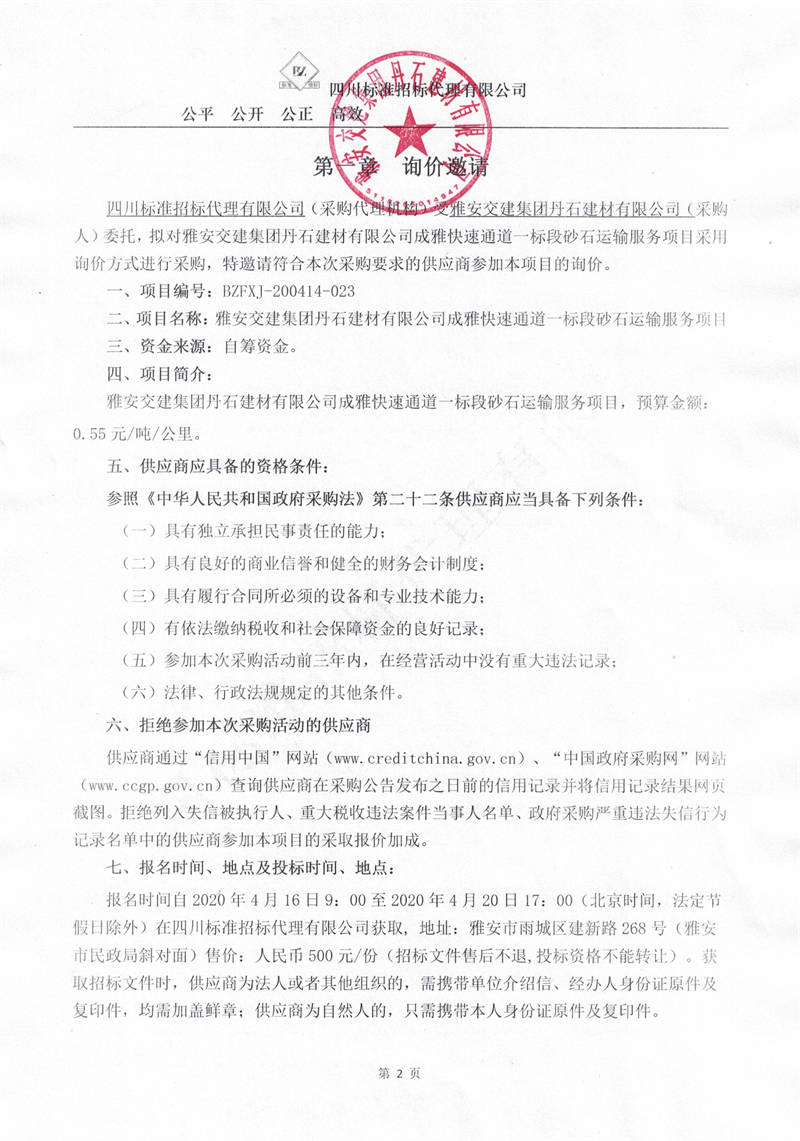雅安交建集團(tuán)丹石建材有限公司成雅快速通道一標(biāo)段砂石運(yùn)輸服務(wù)項(xiàng)目詢價公告