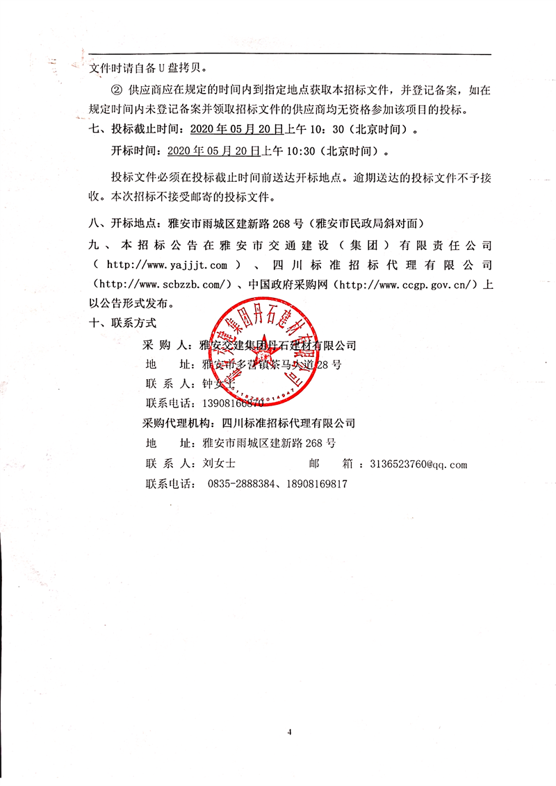 雅安交建集團丹石建材有限公司天全縣魚泉獅子山礦山開采及加工礦區(qū)、廠區(qū)挖運服務(wù)項目公開招標(biāo)結(jié)果公示