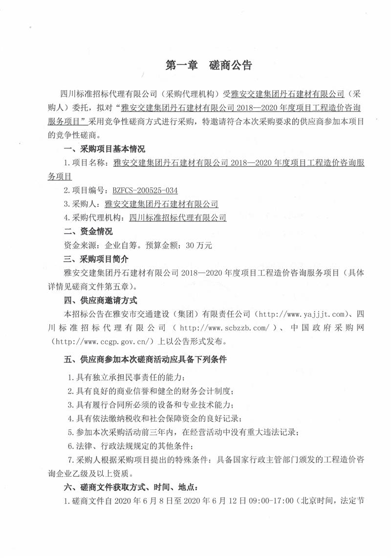 雅安交建集團丹石建材有限公司2018—2020年度項目工程造價咨詢服務(wù)項目競爭性磋商公告