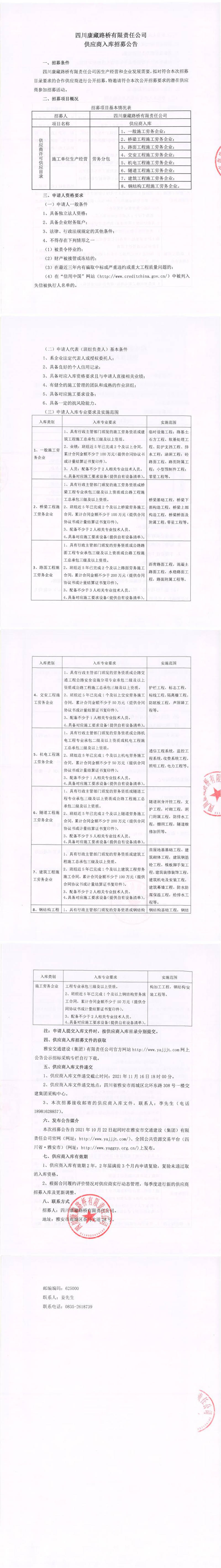 四川康藏路橋有限責(zé)任公司供應(yīng)商入庫(kù)招募公告