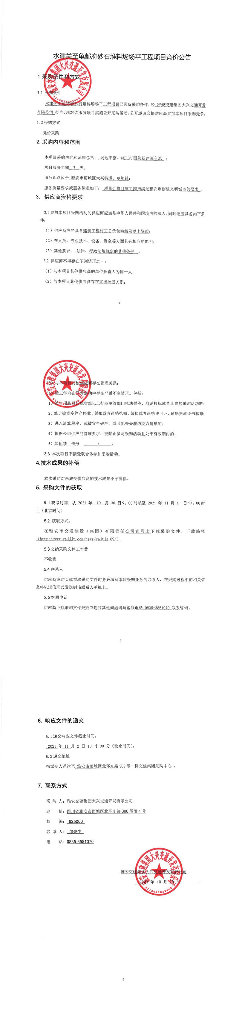 雅安交建集團大興交通開發(fā)有限公司水津關至龜都府砂石堆料場場平工程項目競價公告