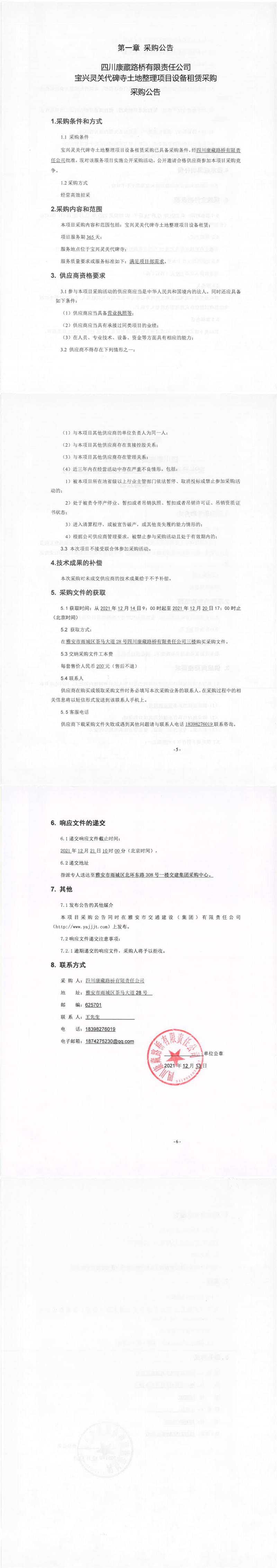 四川康藏路橋有限責任公司寶興靈關代碑寺土地整理項目設備租賃采購采購公告