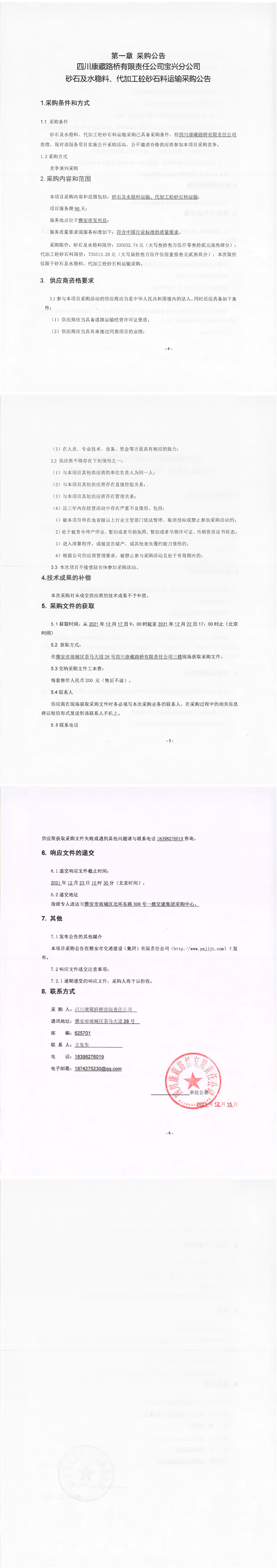 四川康藏路橋有限責(zé)任公司寶興分公司砂石及水穩(wěn)料、代加工砼砂石料運(yùn)輸采購公告