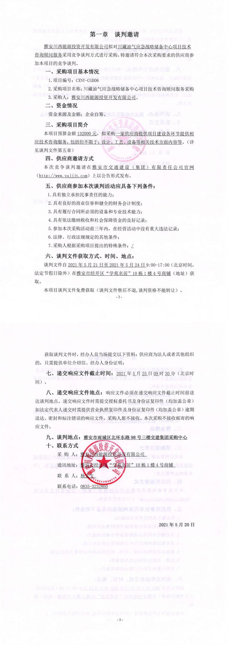 雅安川西能源投資開發(fā)有限公司川藏油氣應(yīng)急戰(zhàn)略儲(chǔ)備中心項(xiàng)目技術(shù)咨詢顧問服務(wù)采購競(jìng)爭(zhēng)談判公告