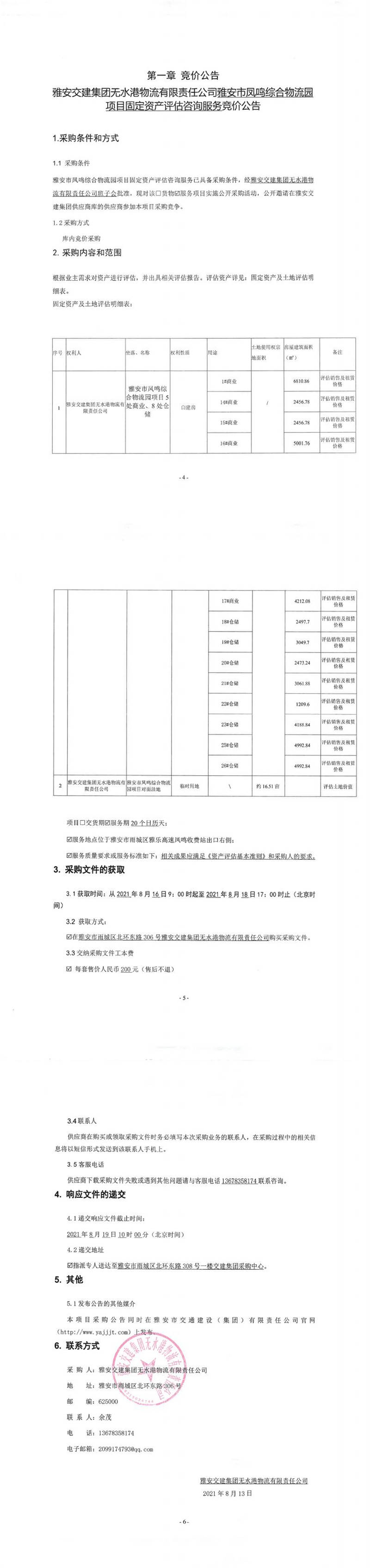 雅安交建集團(tuán)無水港物流有限責(zé)任公司雅安市鳳鳴綜合物流園項(xiàng)目固定資產(chǎn)評估咨詢服務(wù)競價公告