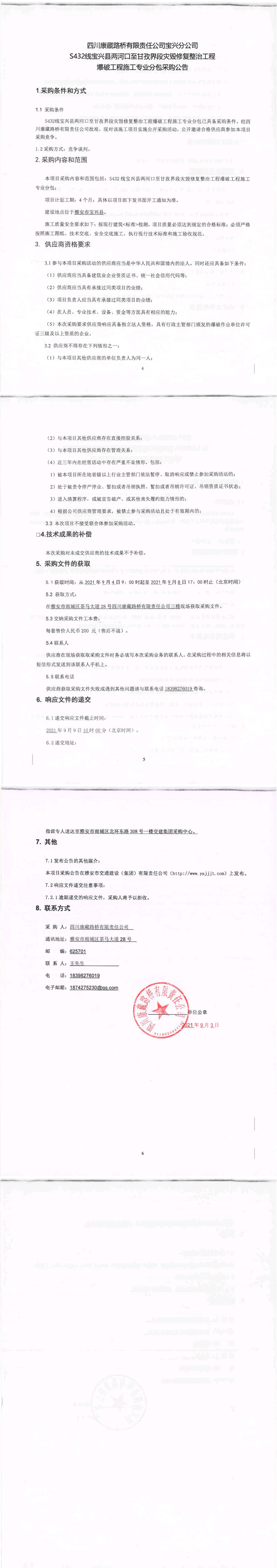 四川康藏路橋有限責任公司寶興分公司s432線寶興縣兩河口至甘孜界段災毀修復整治工程爆破工程施工專業(yè)分包采購公告