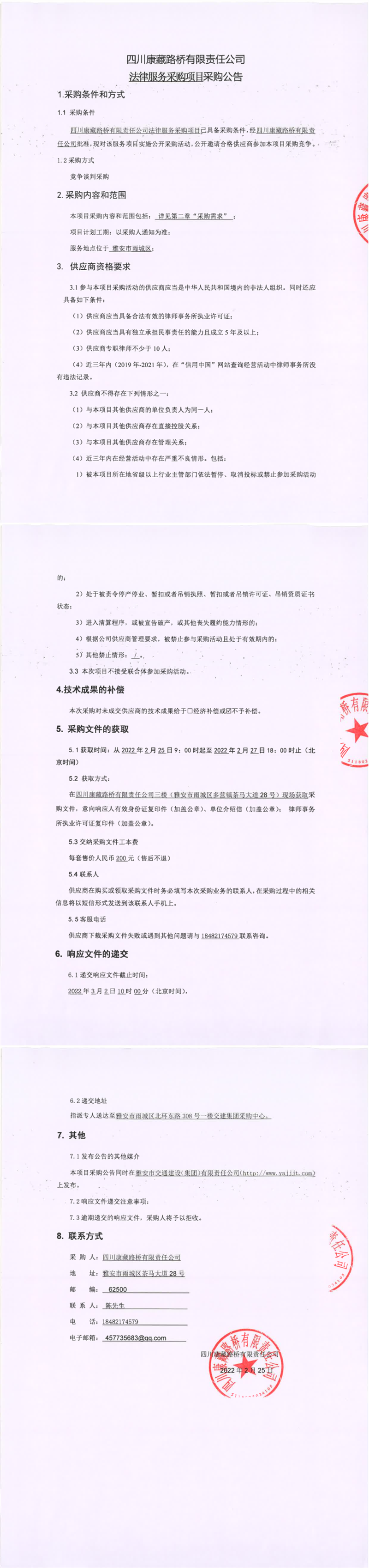 四川康藏路橋有限責(zé)任公司法律服務(wù)采購(gòu)項(xiàng)目采購(gòu)公告