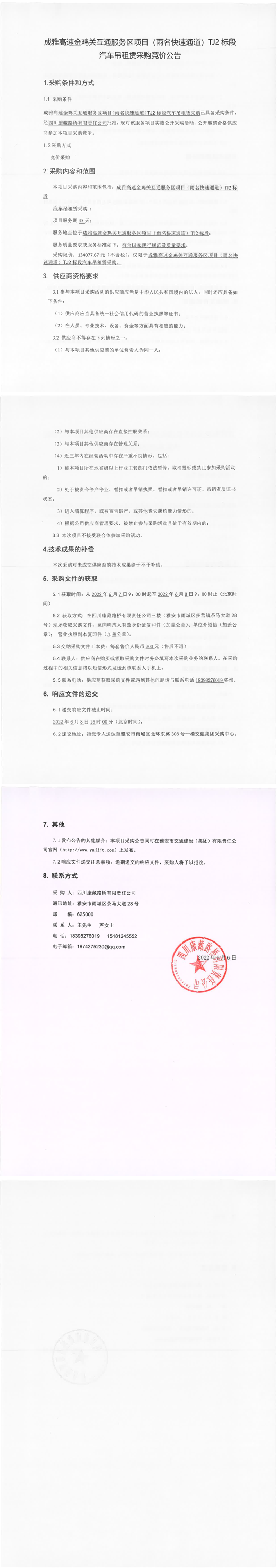 四川康藏路橋有限責(zé)任公司成雅高速金雞關(guān)互通服務(wù)區(qū)項(xiàng)目(雨名快速通道)TJ2標(biāo)段汽車吊租賃采購競價公告