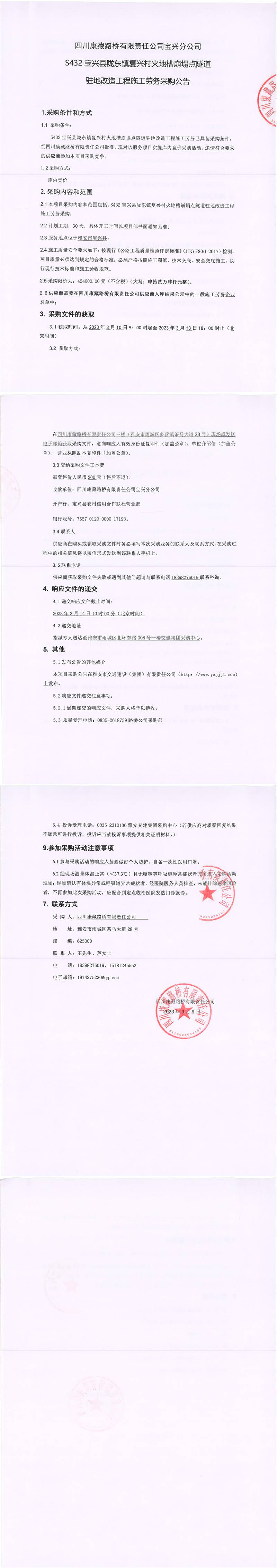 四川康藏路橋有限責(zé)任公司寶興分公司S432寶興縣隴東鎮(zhèn)復(fù)興村火地槽崩塌點隧道駐地改造工程施工勞務(wù)采購公告
