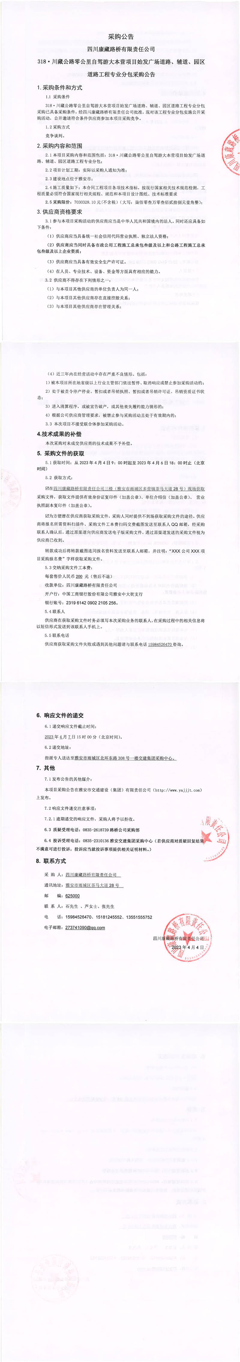 四川康藏路橋有限責(zé)任公司318·川藏公路零公里自駕游大本營項(xiàng)目始發(fā)廣場道路、輔道、園區(qū)道路工程專業(yè)分包采購公告