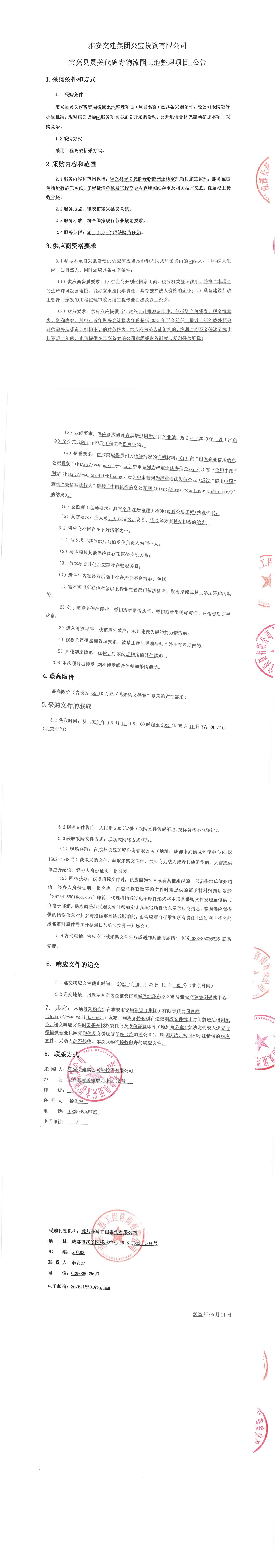 雅安交建集團興寶投資有限公司寶興縣靈關(guān)代碑寺物流園土地整理項目公告