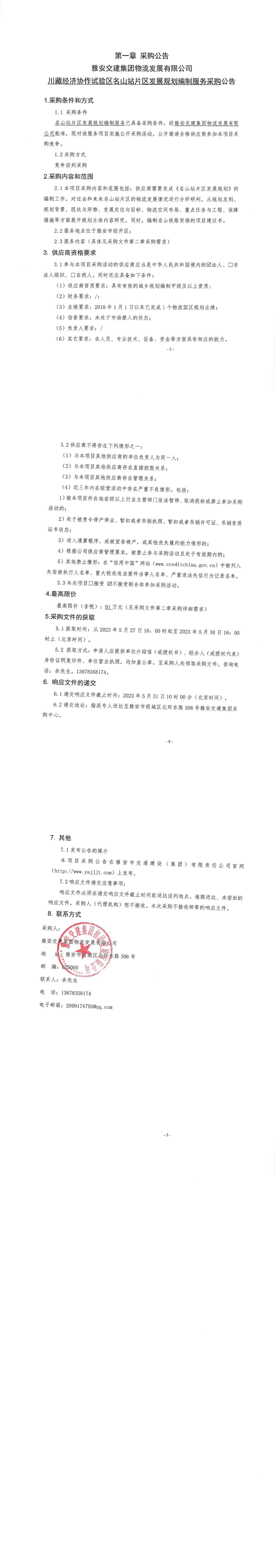 雅安交建集團(tuán)物流發(fā)展有限公司川藏經(jīng)濟(jì)協(xié)作試驗(yàn)區(qū)名山站片區(qū)發(fā)展規(guī)劃編制服務(wù)采購(gòu)公告