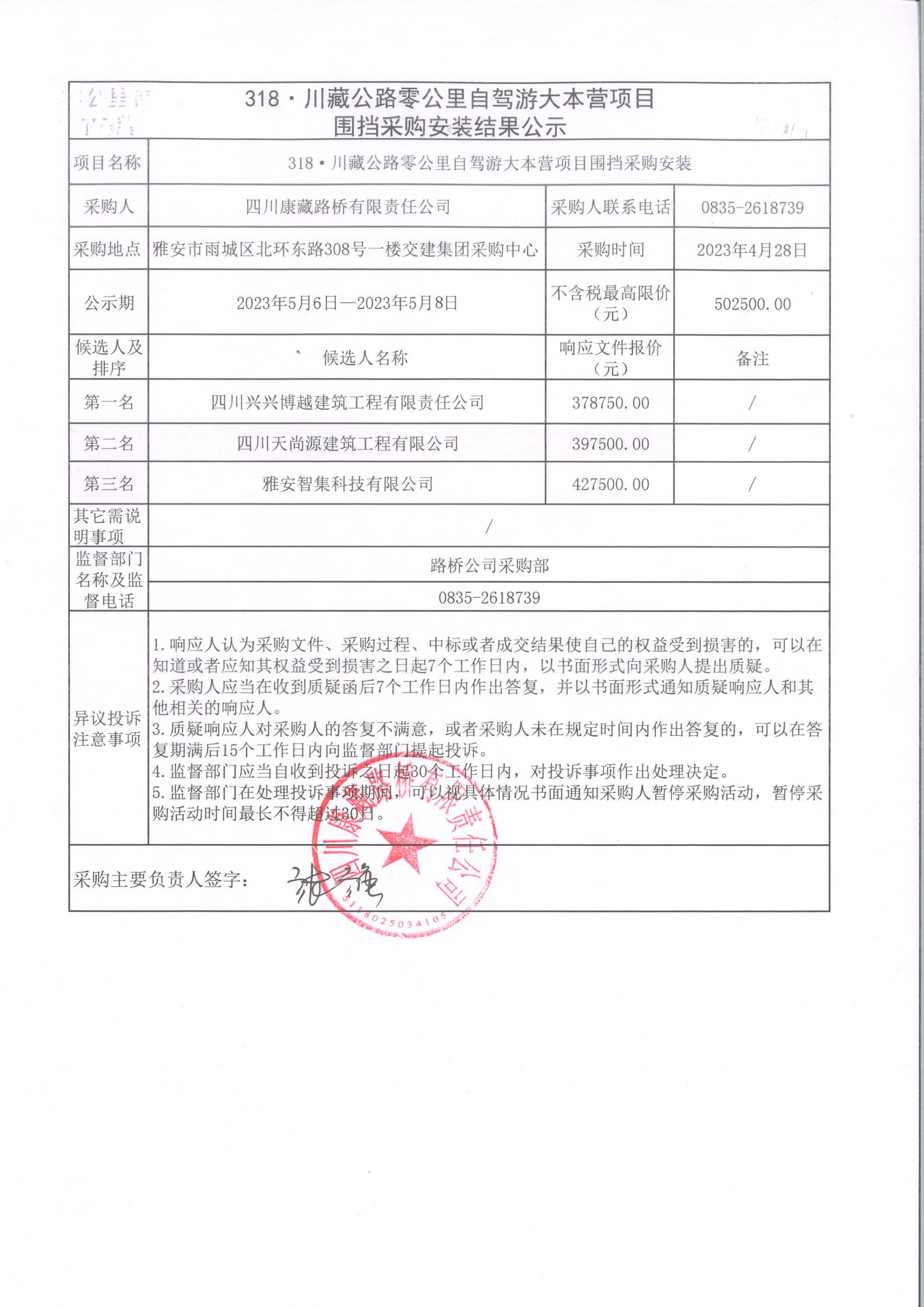 四川康藏路橋有限責任公司318·川藏公路零公里自駕游大本營項目圍擋采購安裝結(jié)果公示