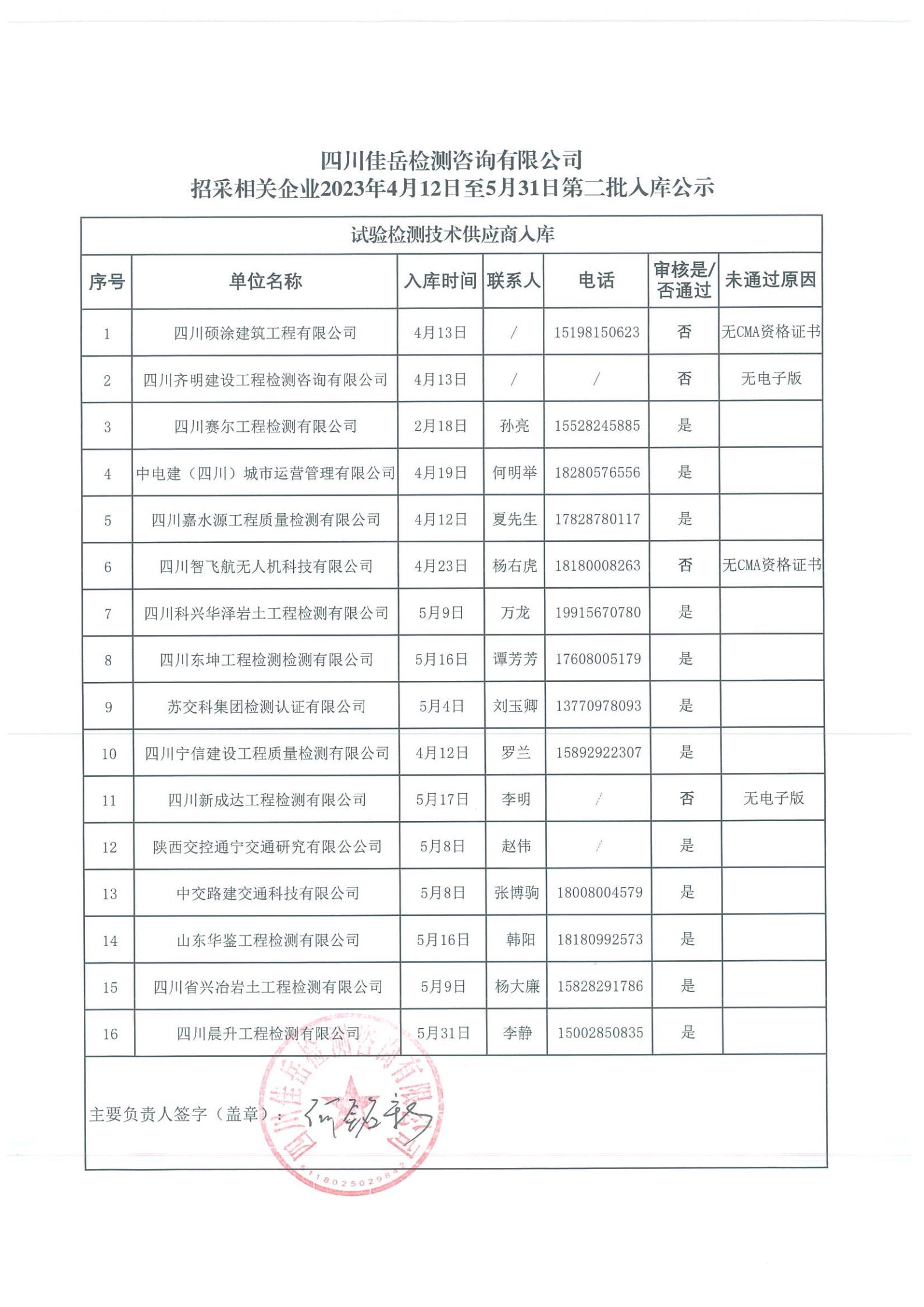 四川佳岳檢測咨詢有限公司(試驗(yàn)檢測技術(shù)供應(yīng)商庫)2023年4月12日至5月31日第二批入庫結(jié)果公示
