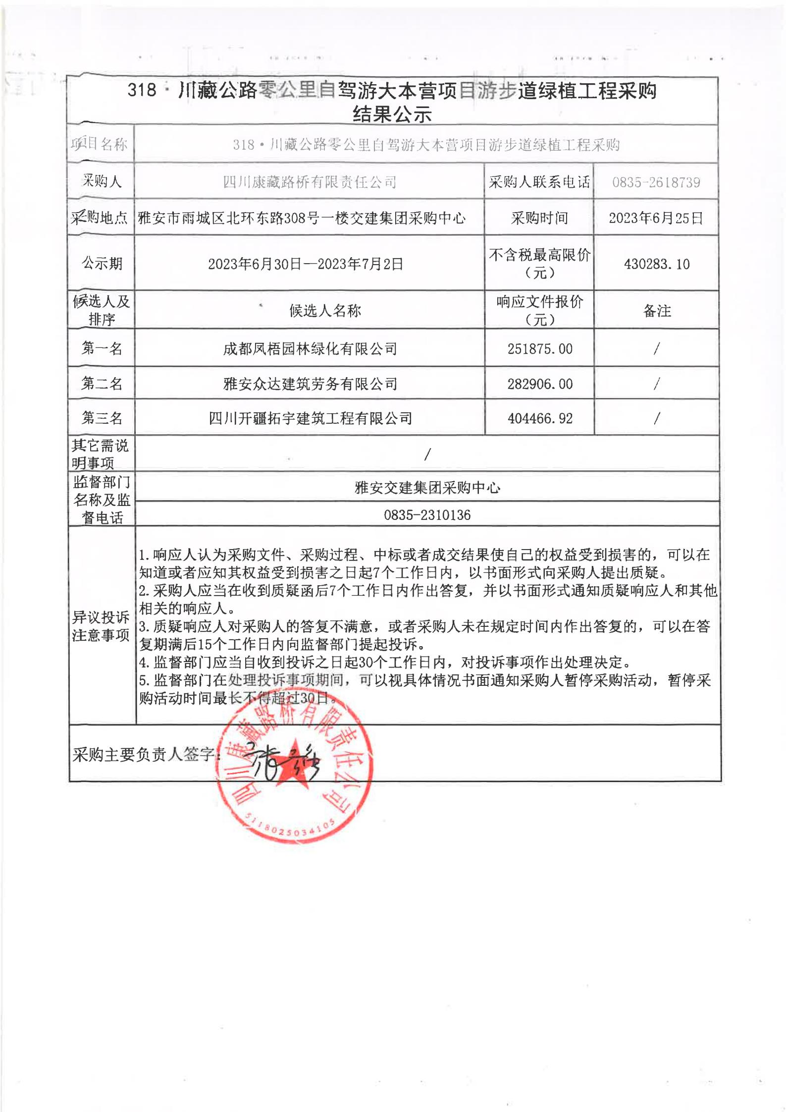 四川康藏路橋有限責任公司318·川藏公路零公里自駕游大本營項目游步道綠植工程采購結(jié)果公示