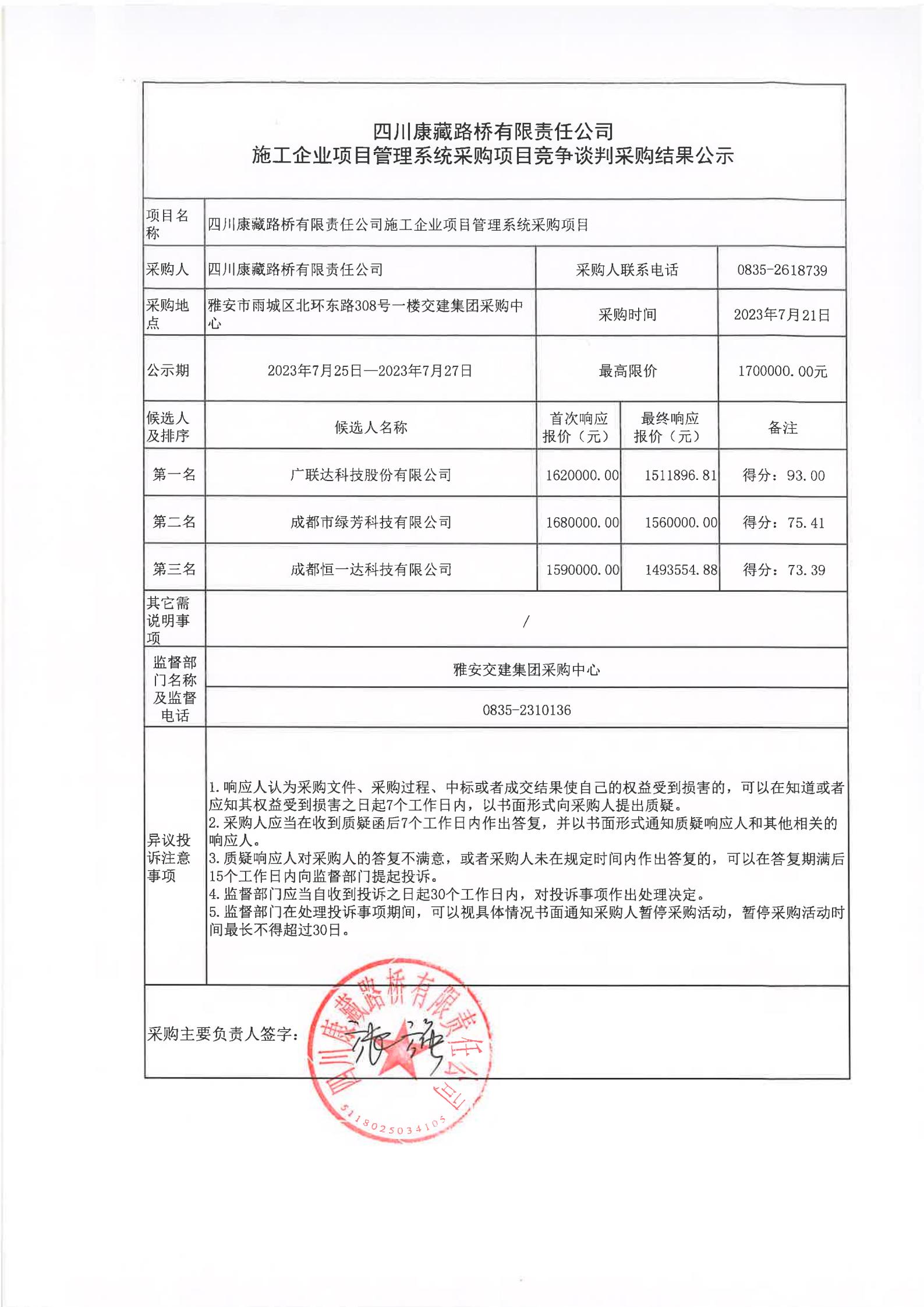 四川康藏路橋有限責(zé)任公司施工企業(yè)項(xiàng)目管理系統(tǒng)采購項(xiàng)目競爭談判采購結(jié)果公示