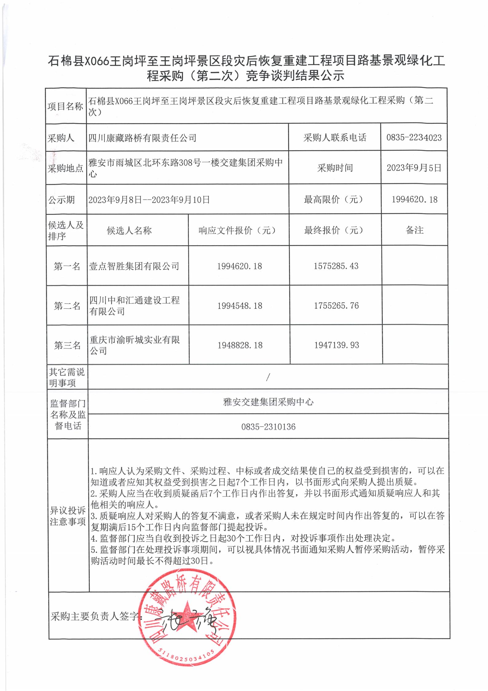 四川康藏路橋有限責(zé)任公司石棉縣X066王崗坪至王崗坪景區(qū)段災(zāi)后恢復(fù)重建工程項(xiàng)目路基景觀綠化工程施工采購(第二次)競(jìng)爭(zhēng)談判結(jié)果公示