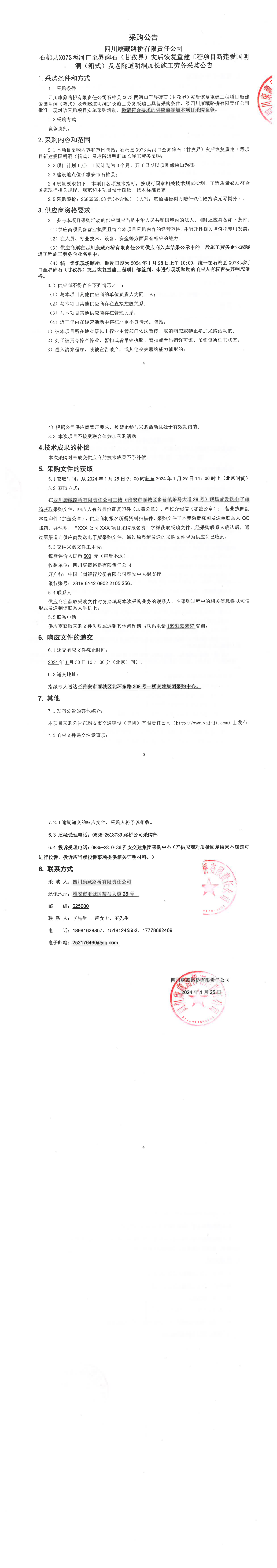 四川康藏路橋有限責(zé)任公司石棉縣X73兩河口至界碑石(甘孜界)災(zāi)后恢復(fù)重建工程項目新建愛國明洞(箱式)及老隧道明洞加長施工勞務(wù)采購公告