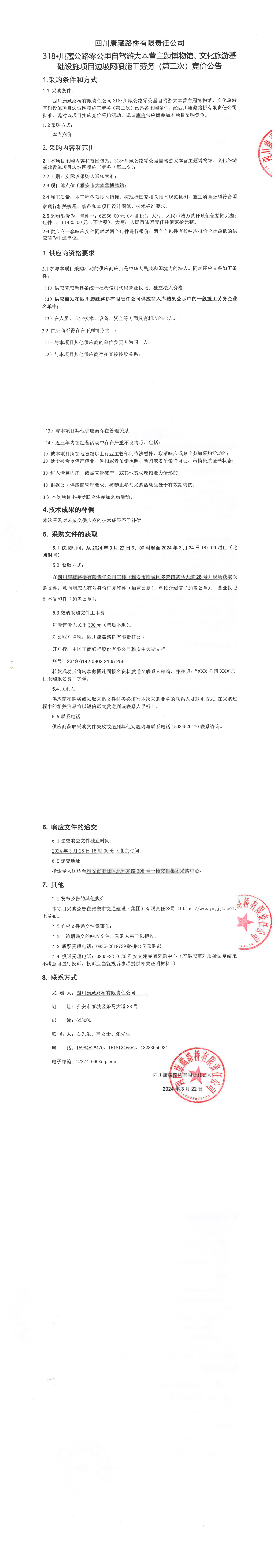 四川康藏路橋有限責(zé)任公司318·川藏公路零公里自駕游大本營主題博物館、文化旅游基礎(chǔ)設(shè)施項(xiàng)目邊坡網(wǎng)噴施工勞務(wù)流標(biāo)通知