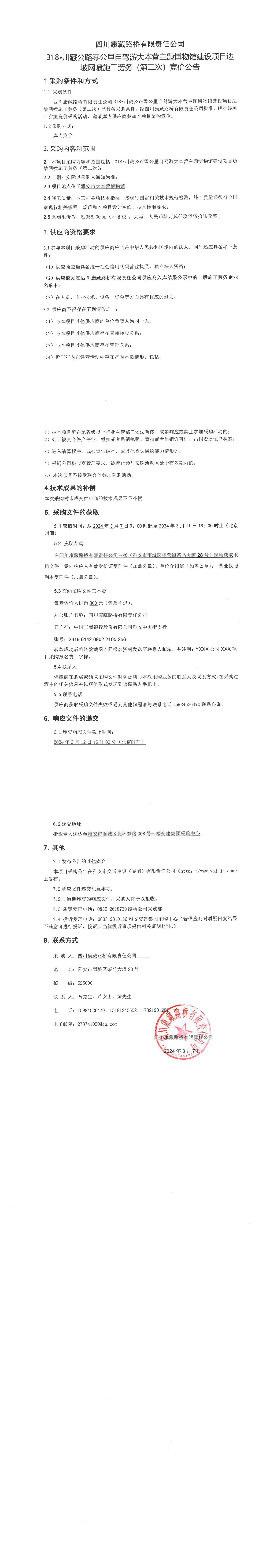 四川康藏路橋有限責(zé)任公司318·川藏公路零公里自駕游大本營主題博物館建設(shè)項目邊坡網(wǎng)噴施工勞務(wù)流標(biāo)通知