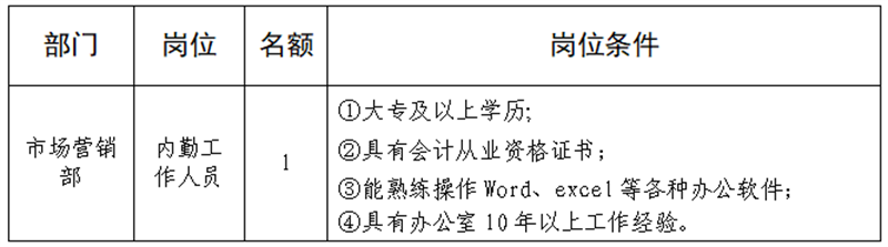雅安交建集團(tuán)平順檢測有限公司是雅安市交通建設(shè)(集團(tuán))有限責(zé)任公司下屬子公司,主要從事機(jī)動車檢測及駕考訓(xùn)練,F(xiàn)根據(jù)公司業(yè)務(wù)發(fā)展需要,擬向社會公開招聘工作人員1名,現(xiàn)將有關(guān)事項(xiàng)公告如下: