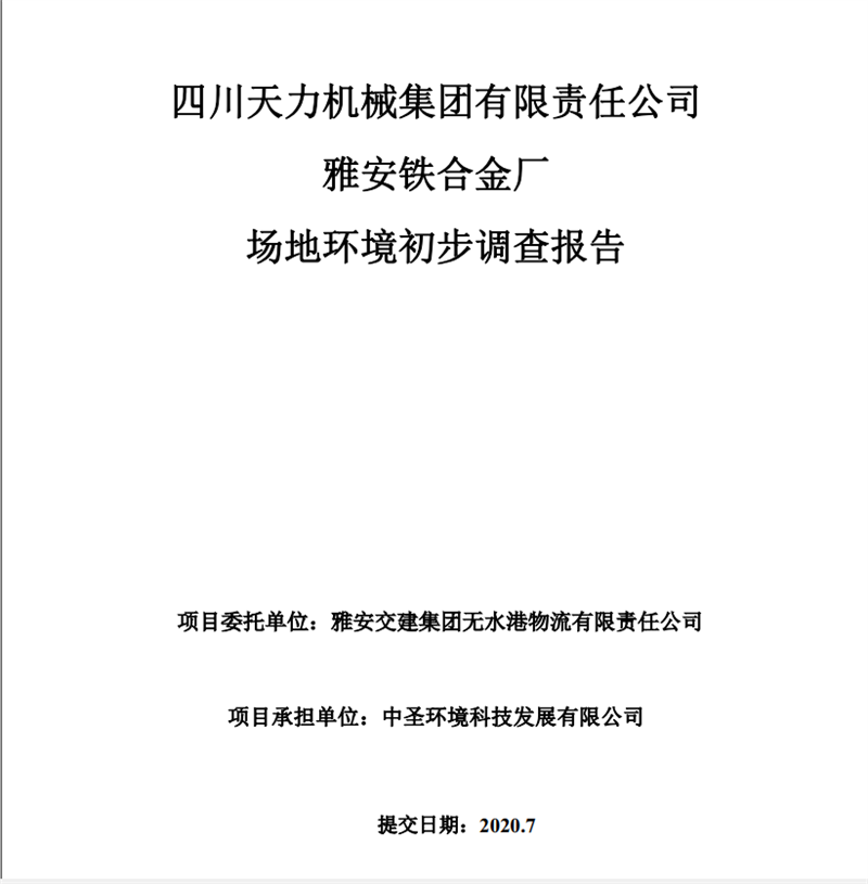 雅安鐵合金廠場地環(huán)境初步調(diào)查報告