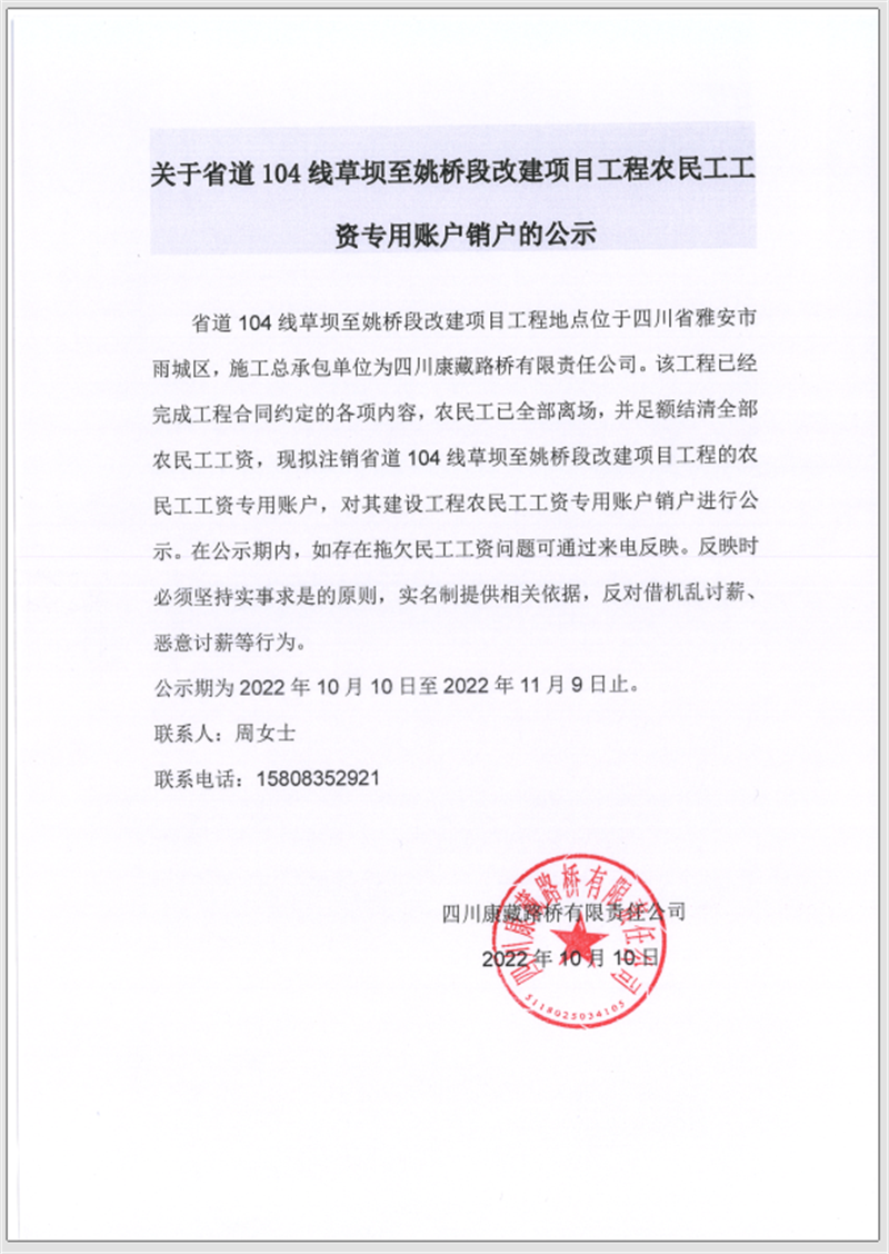 êP(gu¨¡n)ÓÚÊ¡µÀ104¾€²Ý‰ÎÖÁÒ¦˜ò¶Î¸Ä½¨í—(xi¨¤ng)Ä¿¹¤³ÌÞr(n¨®ng)Ãñ¹¤¹¤ÙYŒ£ÓÃÙ~‘ôäN‘ôµÄ¹«¸æ