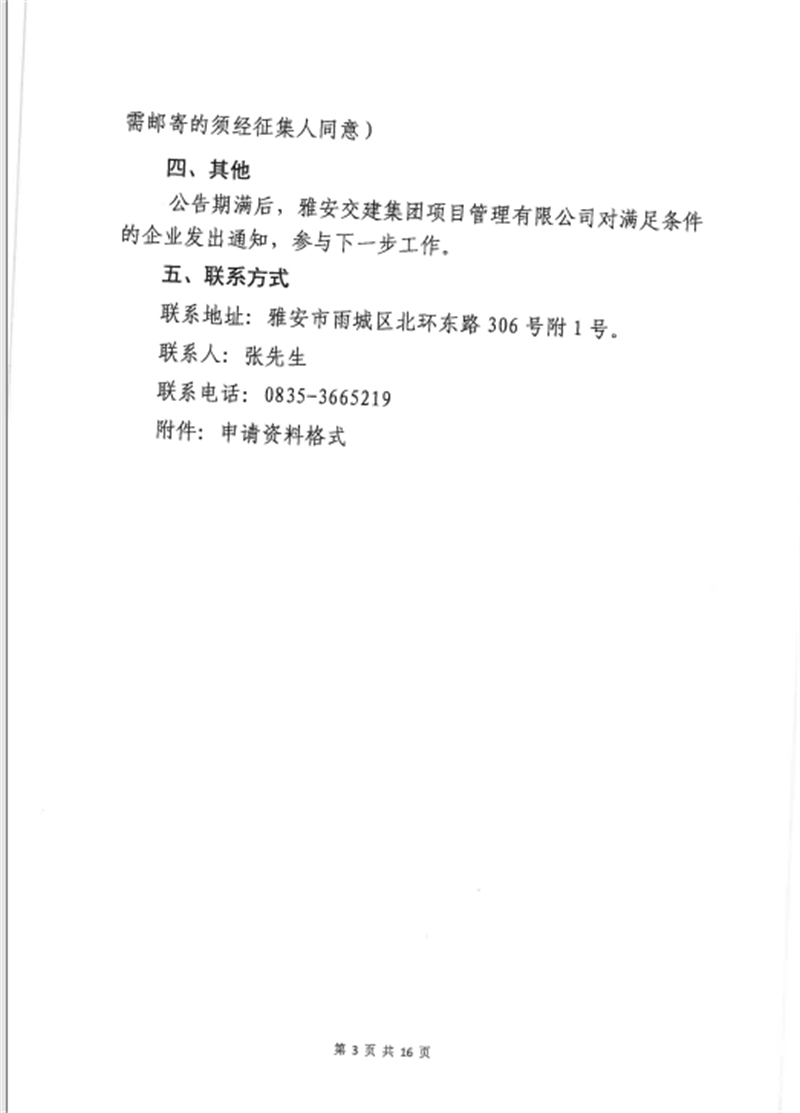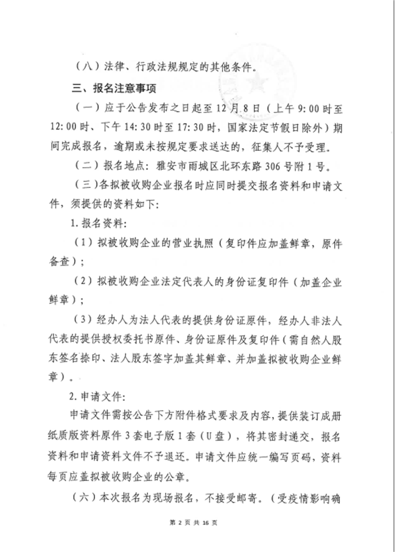 項目公司股權(quán)收購事項征集公告