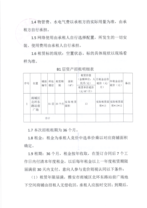 四川康藏路橋有限責(zé)任公司關(guān)于雅安市雨城區(qū)北環(huán)東路站前廣場(chǎng)地下空間商鋪招租的公告