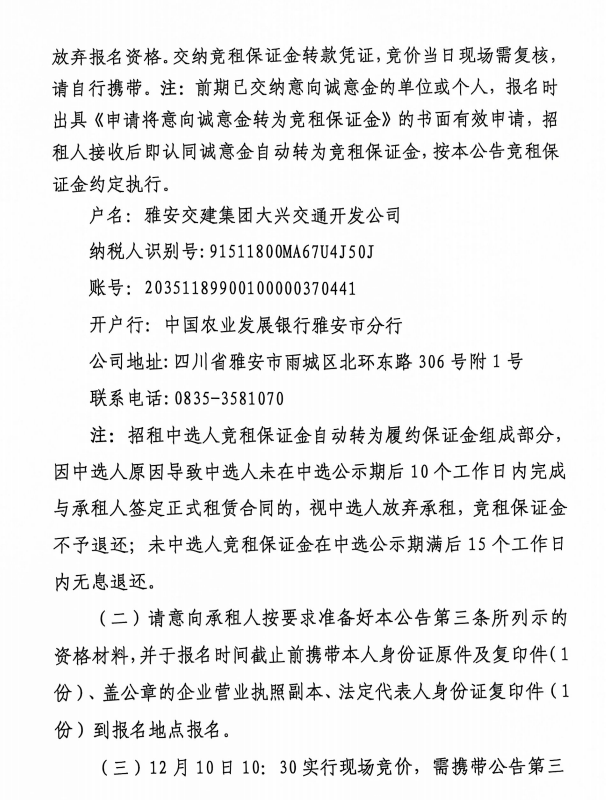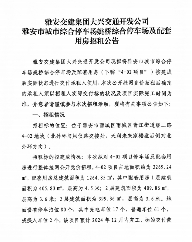 雅安市城市綜合停車場姚橋綜合停車場及配套用房招租公告