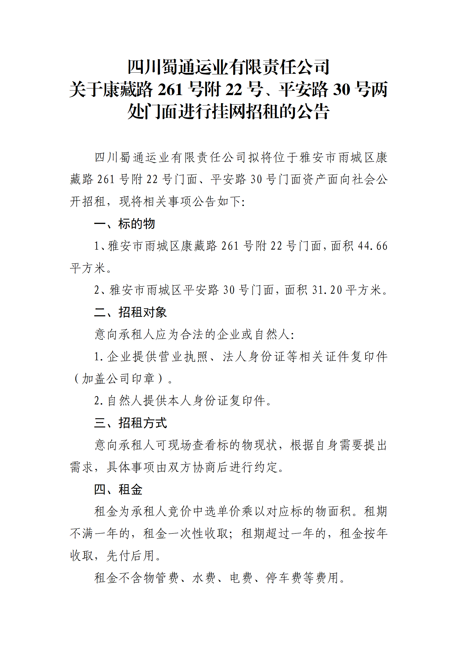 ËÄ´¨Êñͨß\(y¨´n)˜I(y¨¨)ÓÐÏÞØŸ(z¨¦)Èι«Ë¾ êP(gu¨¡n)ÓÚ¿µ²ØÂ·261Ì–(h¨¤o)¸½22Ì–(h¨¤o)¡¢Æ½°²Â·30Ì–(h¨¤o)ƒÉÌŽéTÃæßM(j¨¬n)ÐÐ’ì¾W(w¨£ng)ÕÐ×âµÄ¹«¸æ