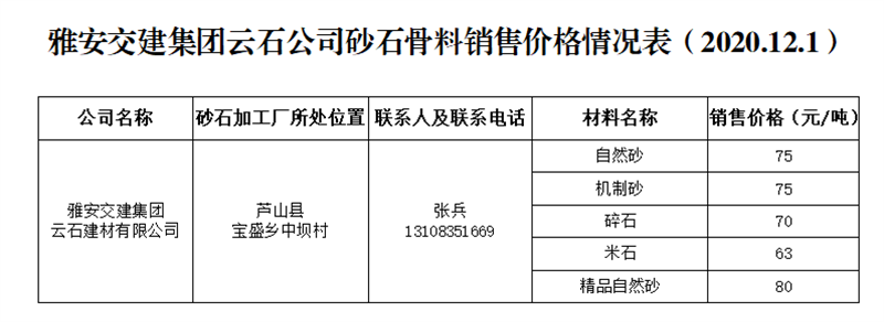 ÑŰ²½»½¨¼¯ˆFÔÆÊ¯¹«Ë¾É°Ê¯¹ÇÁÏäNÊÛƒr¸ñÇé›r±í£¨2020.12.1£©