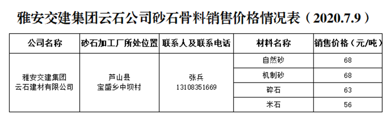 ÑŰ²½»½¨¼¯ˆF(tu¨¢n)ÔÆÊ¯¹«Ë¾É°Ê¯¹ÇÁÏäNÊÛƒr¸ñÇé›r±í£¨2020.7.9£©