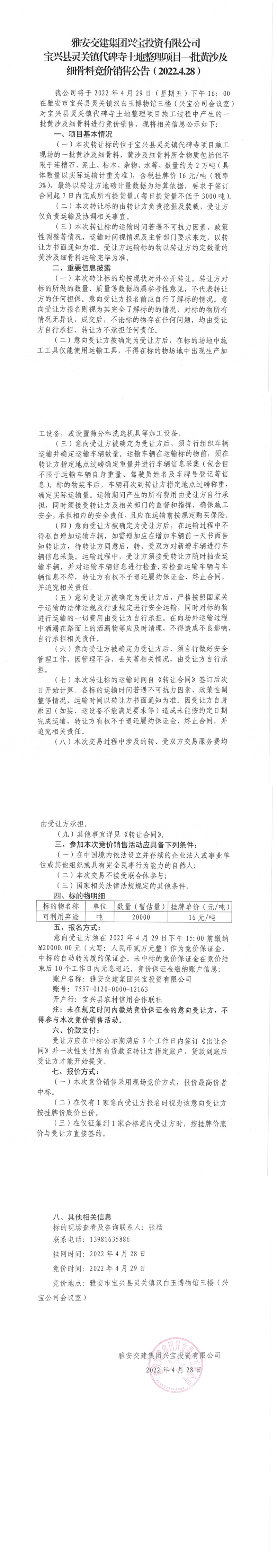 ÑŰ²½»½¨¼¯ˆF(tu¨¢n)ÅdŒšÍ¶ÙYÓÐÏÞ¹«Ë¾ŒšÅd¿hì`êP(gu¨¡n)æ‚(zh¨¨n)´ú±®ËÂÍÁµØÕûÀíí—(xi¨¤ng)ĿһÅúüSɳ¼°¼š(x¨¬)¹ÇÁϸ‚(j¨¬ng)ƒr(ji¨¤)äN(xi¨¡o)ÊÛ¹«¸æ£¨2022.4.28£©