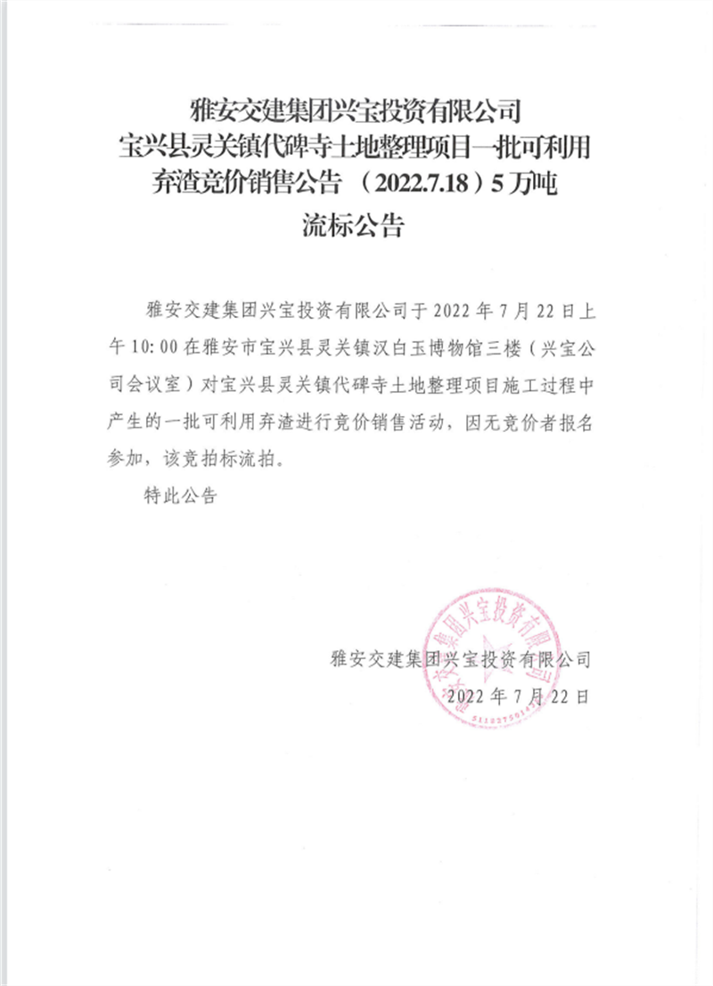 興寶公司流標(biāo)公告7.18(5萬(wàn)噸)
